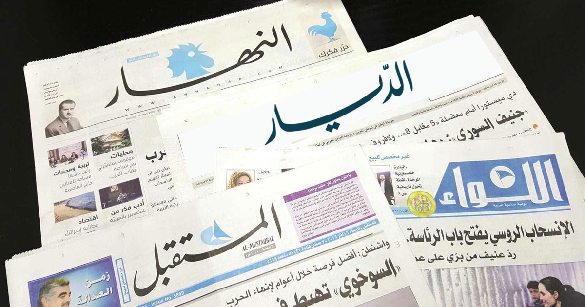 عناوين الصحف اللبنانية ليوم الاربعاء 16-01-2019